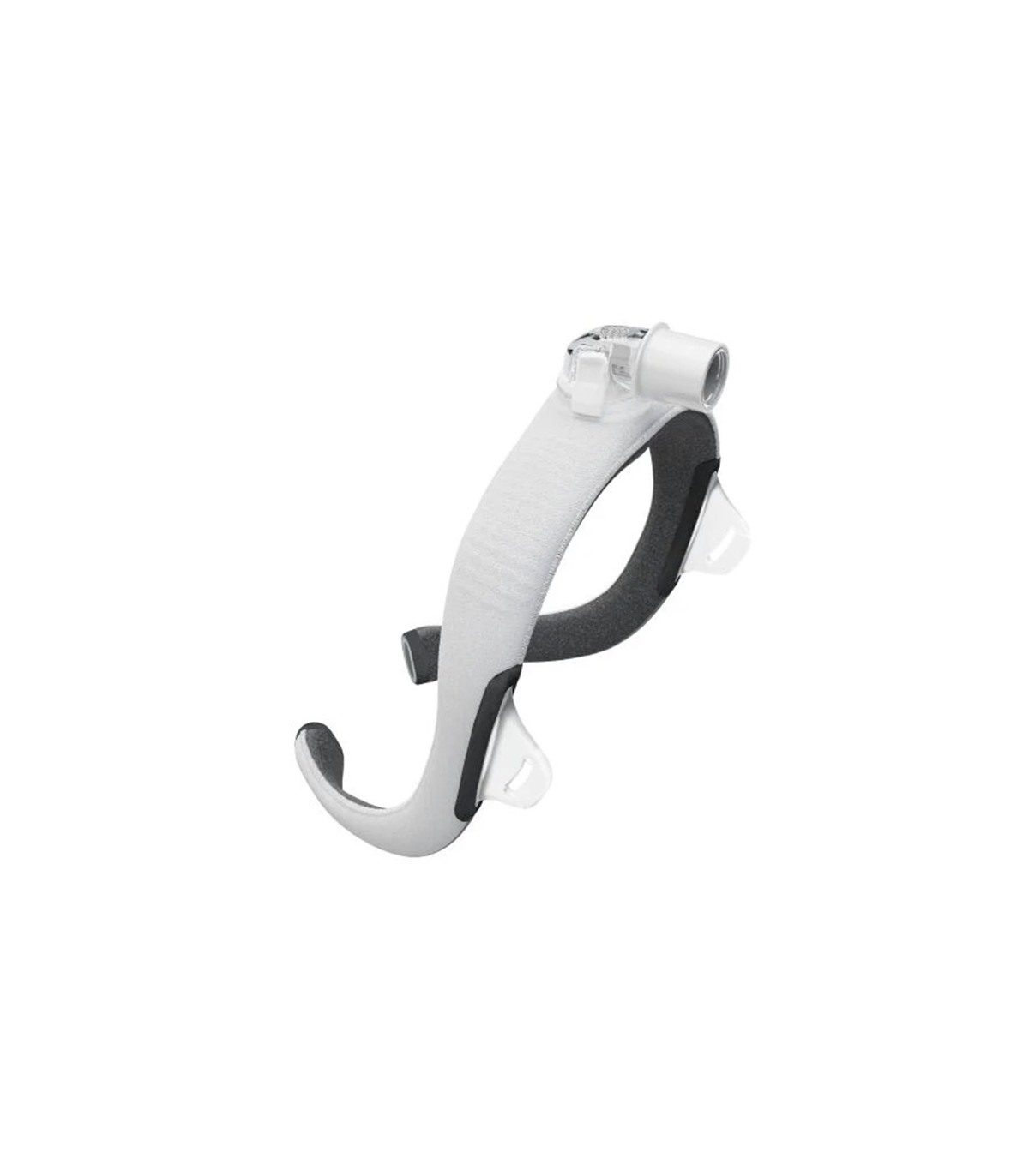 Telaio con gomito di ricambio per la maschera AirTouch™ N30i, progettato da ResMed con sistema SpringFit™ autoregolante. Rivestito in tessuto morbido, traspirante e antiumidità, è delicato su pelle e capelli e contribuisce a una maggiore morbidezza e stabilità durante la terapia CPAP.